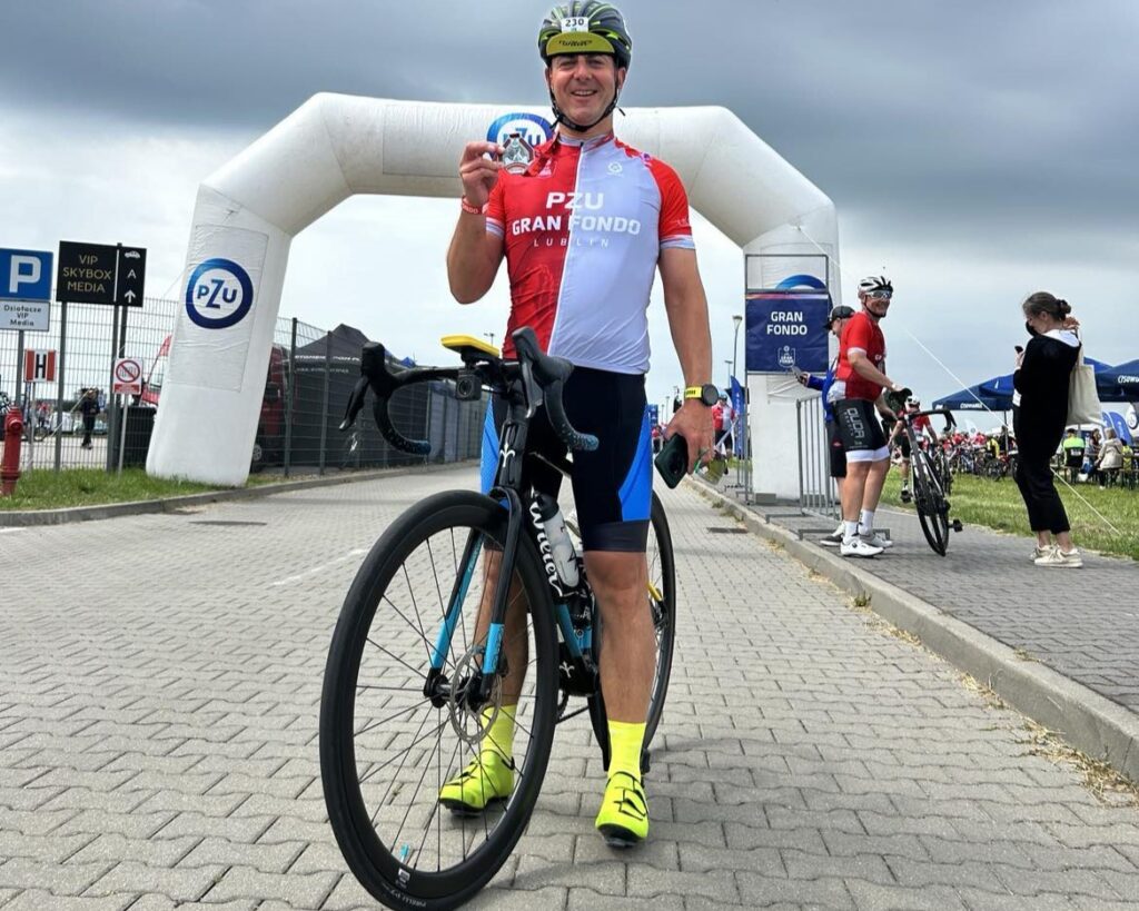 Na weekend po raz pierwszy w historii do Lublina zawitał wyścig kolarski PZU Gran Fondo. Jest to cykl wyścigów szosowych dla amatorów, które łączą sportową rywalizację z niezapomnianymi krajobrazami i doskonałą organizacją. Organizator przygotował dla uczestników fantastycznie zabezpieczoną trasę (brak ruchu pojazdów, bufety) na dystansach 82 km (Medio Fondo) oraz 128 km (Gran Fondo). Na krótszej z nich postanowił się sprawdzić nasz prezes Maciek. Trasę pokonał z czasem 2:30:44 (średnia prędkość 32.7km/h) zajmując miejsce 51 (16 w swojej kategorii). GRATULACJE